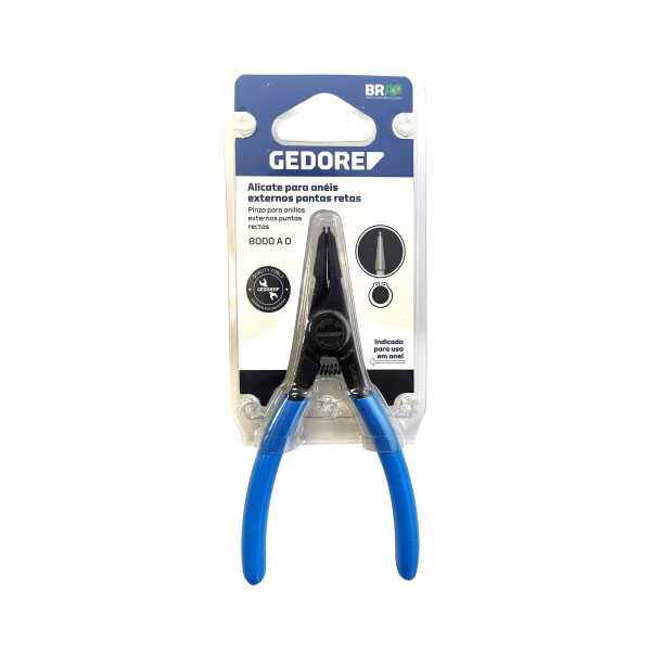 Alicate para anéis externos pontas retas ref. 8000 A0, 8000 A1, 8000 A2 e 8000 A3, são fornecidos em embalagem autoserviço.
