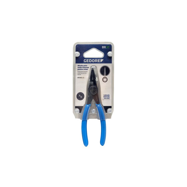 Alicate com pontas fixas e retas. Para anéis de segurança internos conforme norma DIN 472 e DIN 984. Alicate para anéis internos pontas fixas e retas ref. 8000 J0, 8000 J1, 8000 J2 e 8000 J3, são fornecidos em embalagem autoserviço.