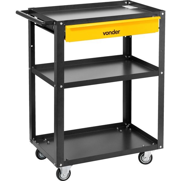 Descrição: Carrinho para ferramentas Indicado para transporte de ferramentas e afins Possui alça para empurrar/puxar, 4 rodízios de 3", 2 fixos e 2 giratórios e 1 gaveta metálica com fechamento para cadeado. Altura do carrinho para ferramentas:85,0 cm Largura do carrinho para ferramentas:40,0 cm Comprimento do carrinho para ferramentas:60,0 cm Material do carrinho para ferramentas:Aço carbono Cor do carrinho para ferramentas:Preto e amarelo Capacidade de carga do carrinho para ferramentas:80 kgf Garantia - E (CDC):Garantia legal: 90 dias